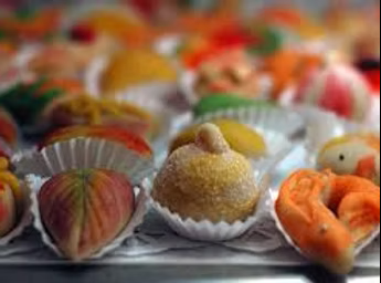 As amêndoas são moídas. Juntam-se-lhes o açúcar, o chocolate, a canela, a erva-doce, a raspa de limão e mistura¬se tudo muito bem.